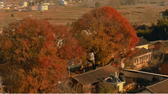 在鹤庆金墩乡南山河的村口,岁月以树的形式驻足。古漆树静静矗立,它们像是大地向天空舒展的信笺,将整整一个村庄的百年光阴,都落笔成了静默而磅礴的文字。这封长信最惊艳的段落,总是在深冬霜降之后被缓缓打开——那时,满树的苍翠化作了漫天的丹霞。