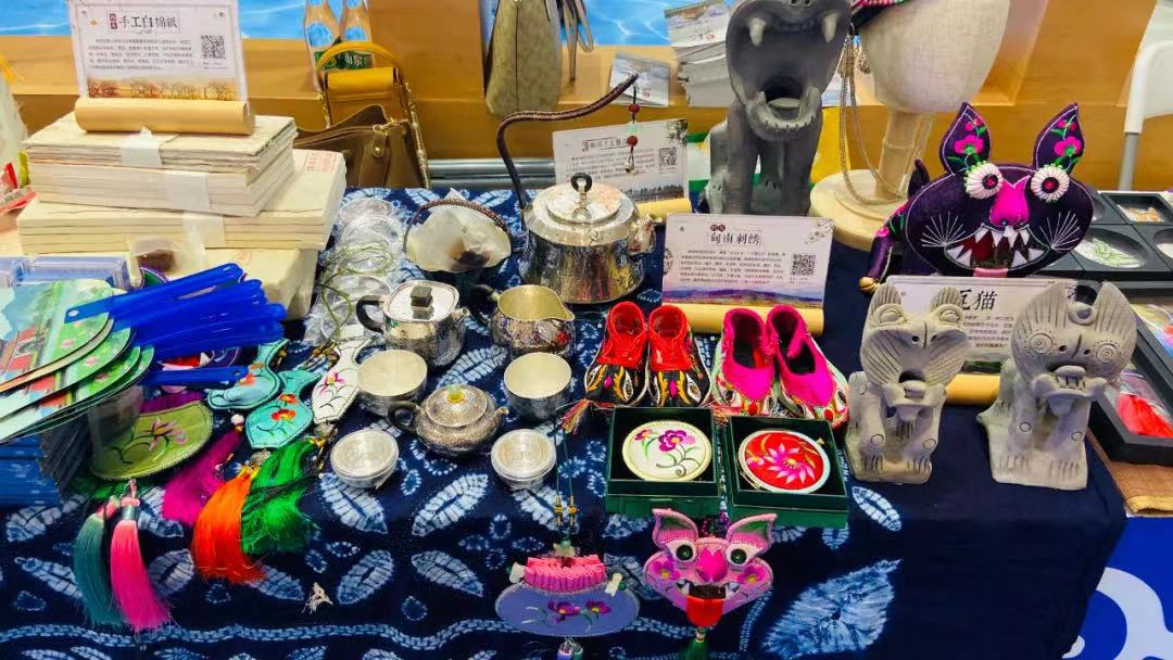 本次旅交会,鹤庆县带着宣传折页、宣传片以及银器、刺绣等非遗文创产品参会,丰富多彩的推介内容和技艺精湛的文创产品,吸引了众多目光。