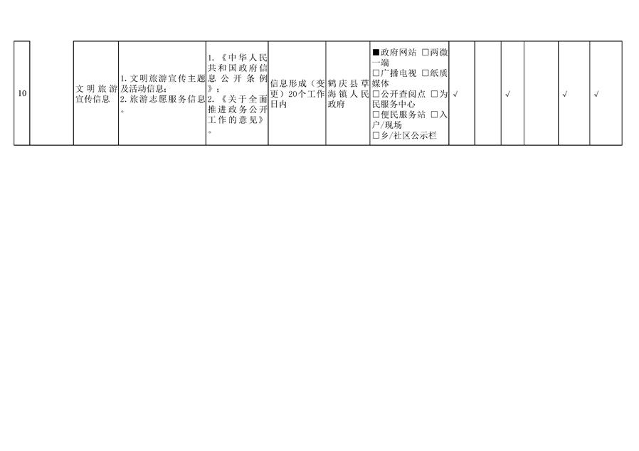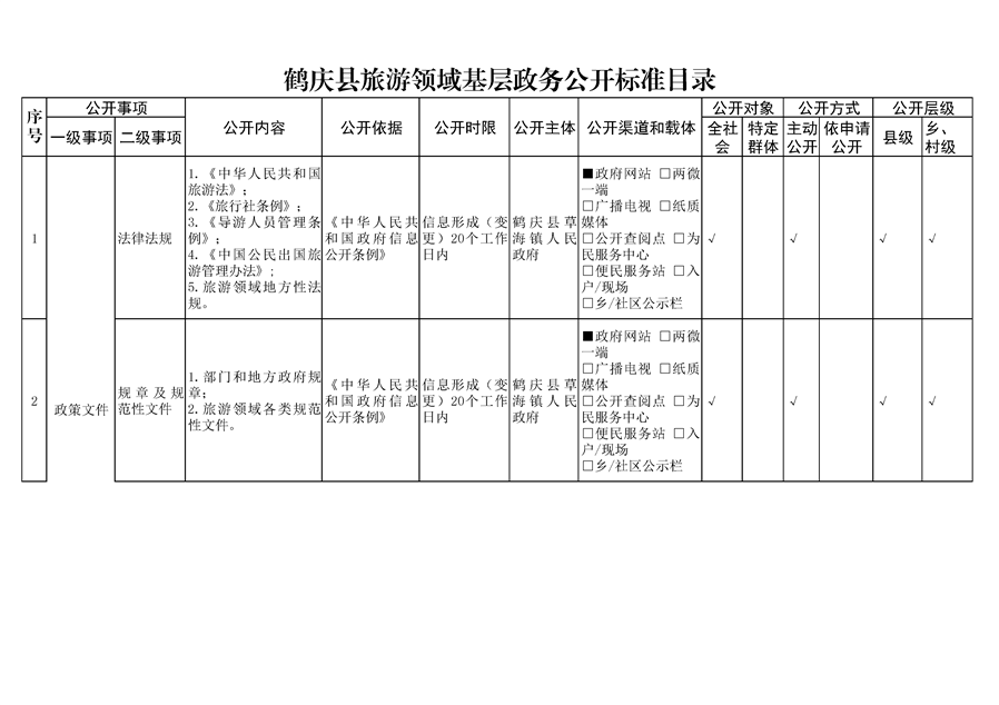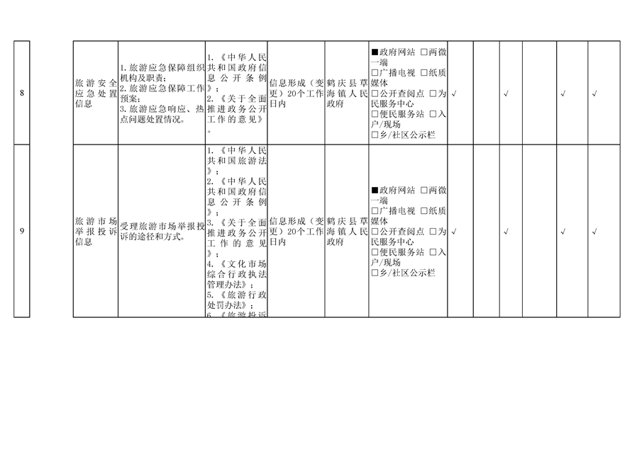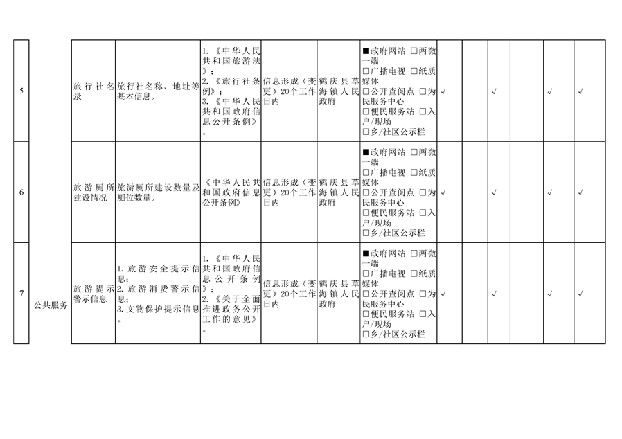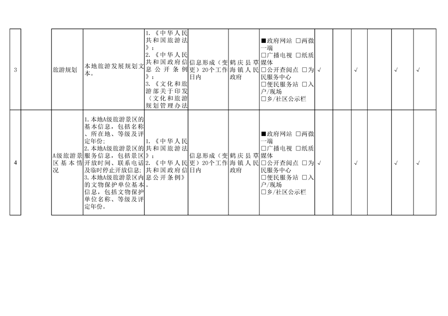 鹤庆县草海镇旅游领域基层政务公开标准目录