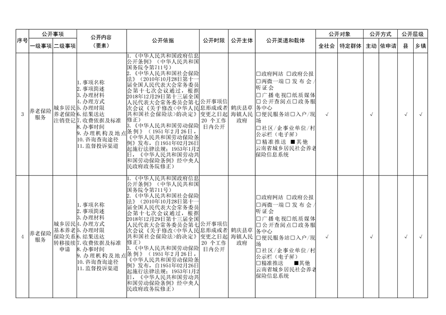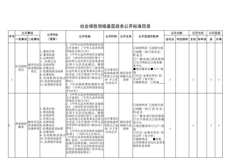 鹤庆县草海镇社会保险领域基层政务公开标准目录