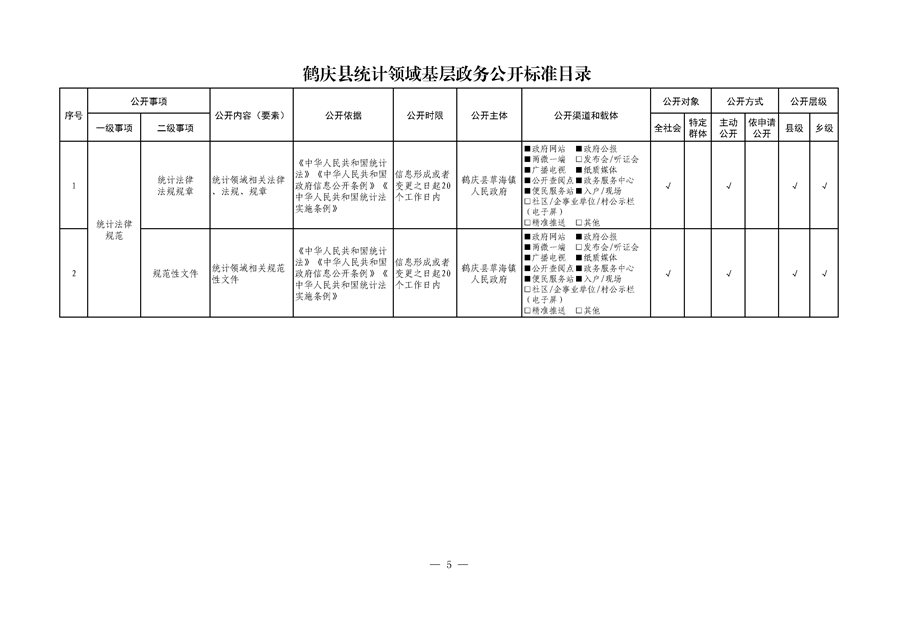 鹤庆县草海镇统计领域信息公开标准目录