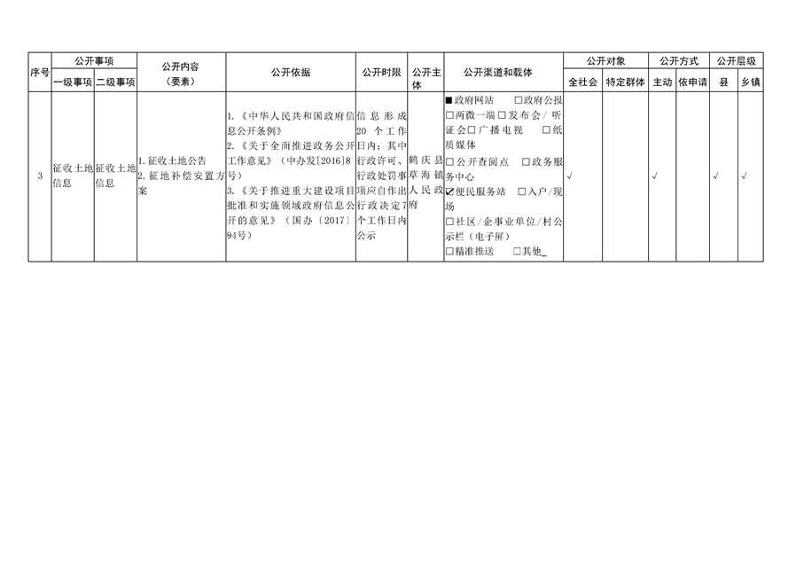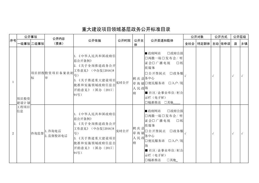 鹤庆县草海镇重大项目建设领域基层政务公开标准目录