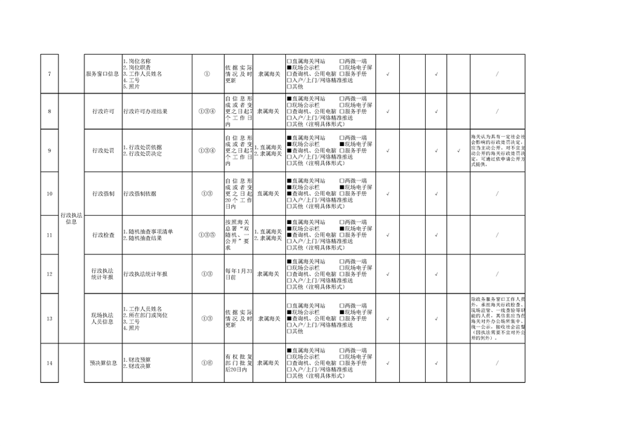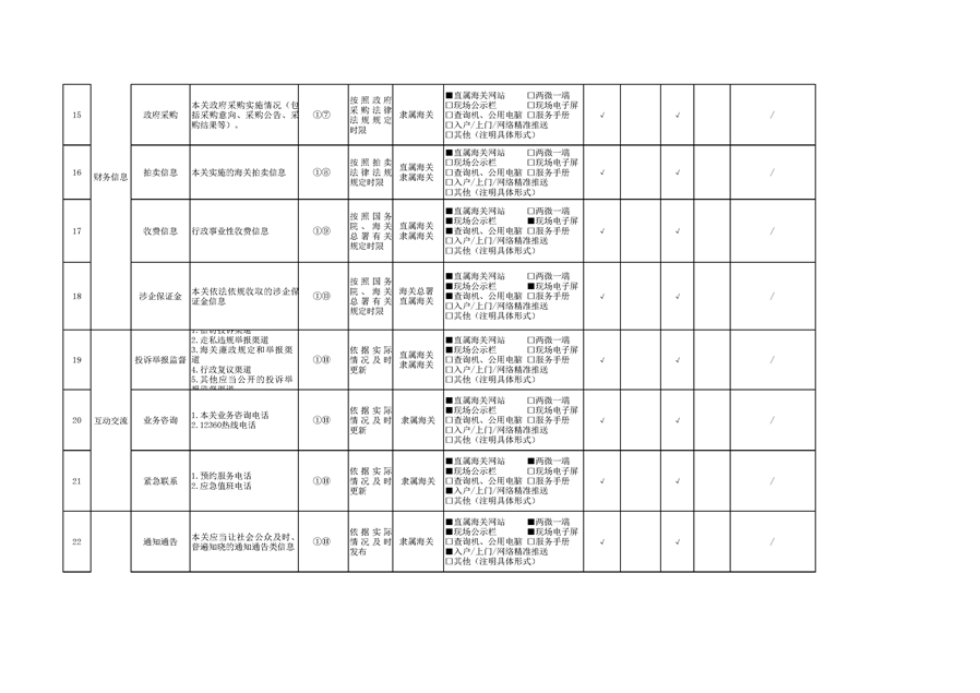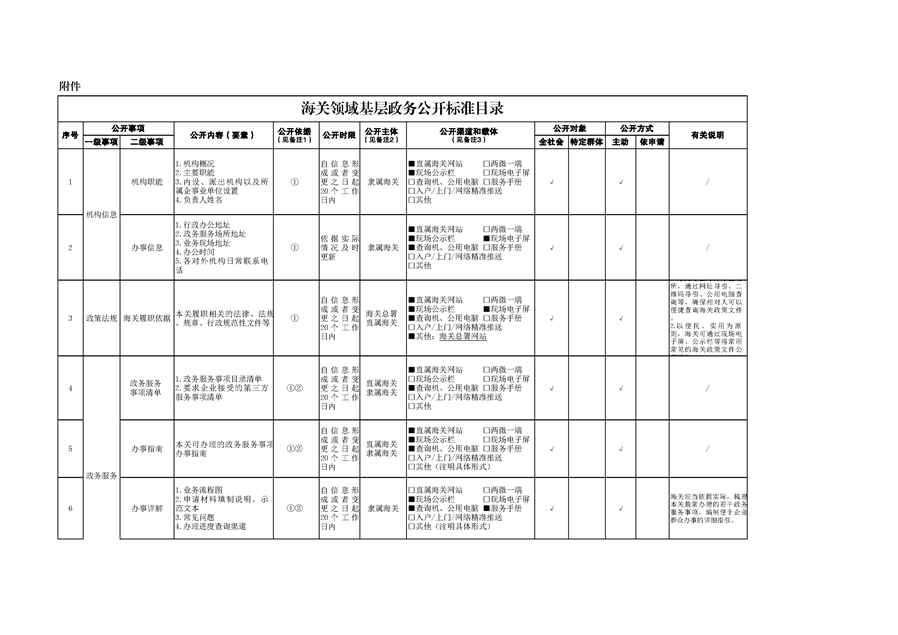 鹤庆县草海镇海关领域基层政务公开标准目录