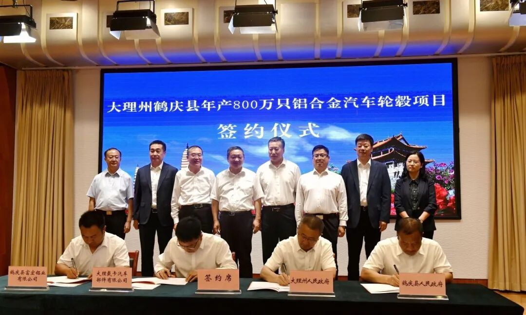 9月8日下午,鹤庆县年产800万只铝合金汽车轮毂项目在大理国际会议中心举行签约仪式。
