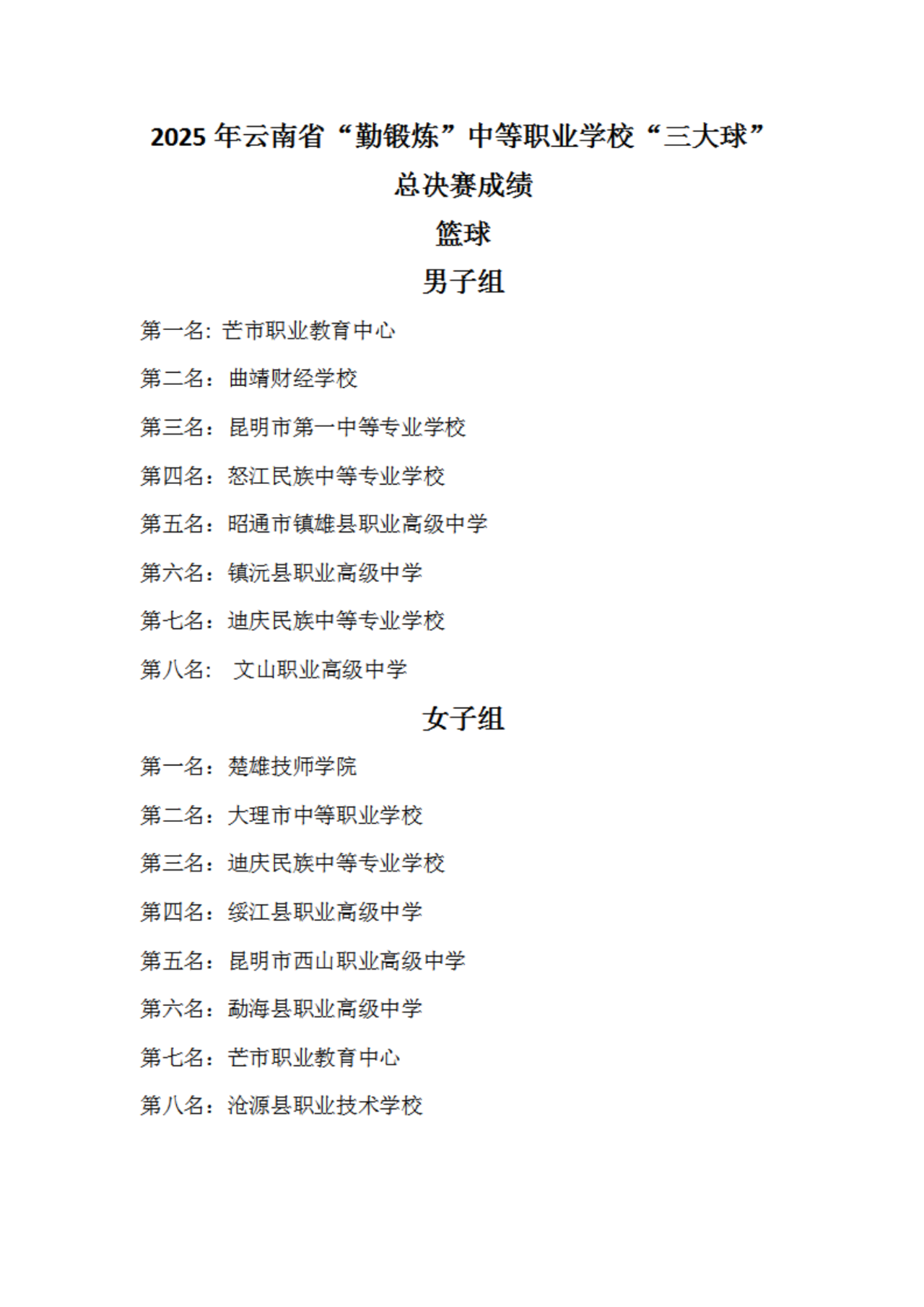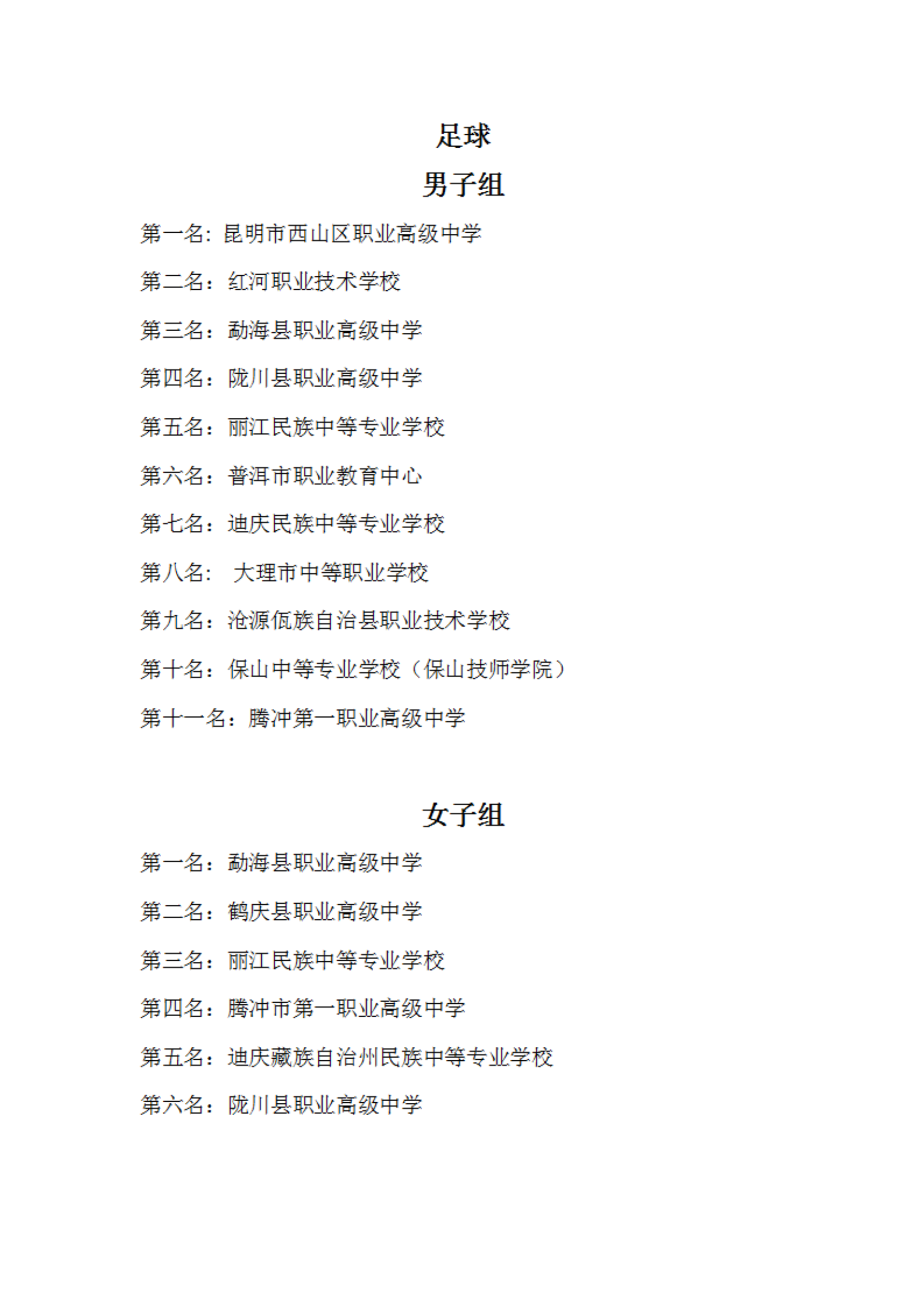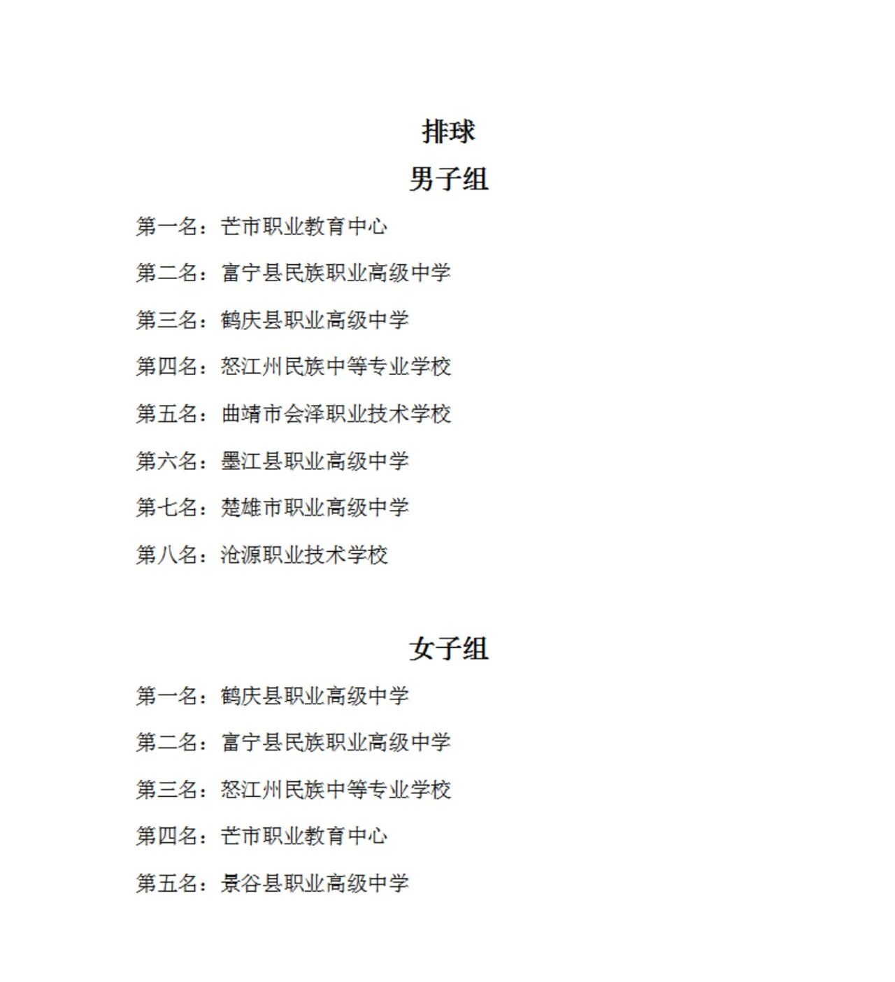 最终,各大奖项各归其主:篮球男子组桂冠由芒市职业教育中心摘得,女子组冠军被楚雄技师学院收入囊中;足球赛场,昆明市西山区职业高级中学男子队与勐海县职业高级中学女子队登顶;排球项目中,芒市职业教育中心男子队和东道主鹤庆县职业高级中学女子队斩获头名。值得一提的是,鹤庆县职业高级中学表现亮眼,包揽排球女子组冠军、足球女子组亚军和排球男子组季军,成为本土参赛队伍中的突出代表。
