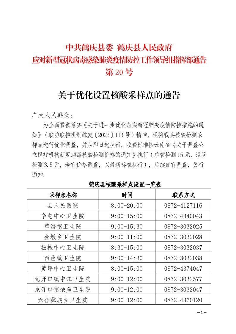 中共鹤庆县委鹤庆县人民政府应对新型冠状病毒感染肺炎疫情防控工作领导小组指挥部通告(第20号)