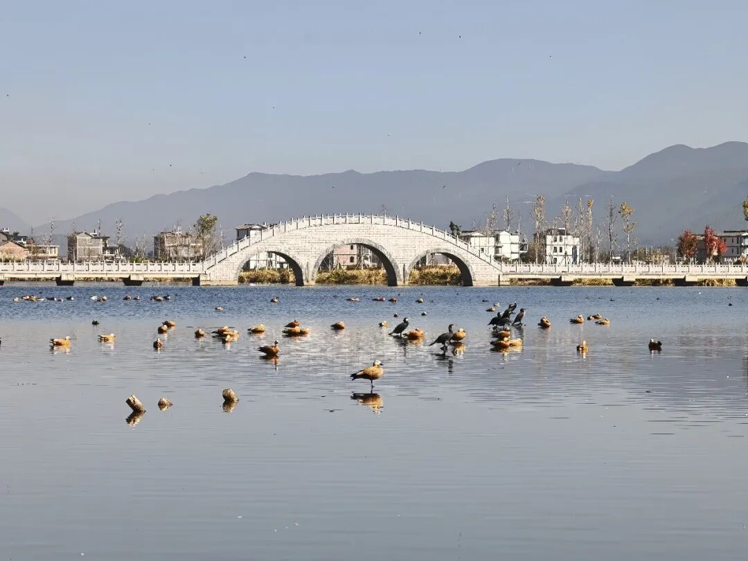 1月28日上午,鹤庆县社区运动会暨新年全民健步走活动在东草海国家级湿地公园举行。