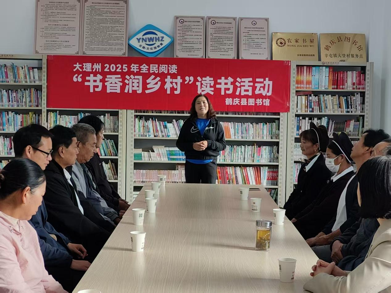 2025年9月29日上午鹤庆县图书馆与新华书店鹤庆分公司到辛屯镇大登村农家书屋服务点开展“书香润乡村”读书活动。