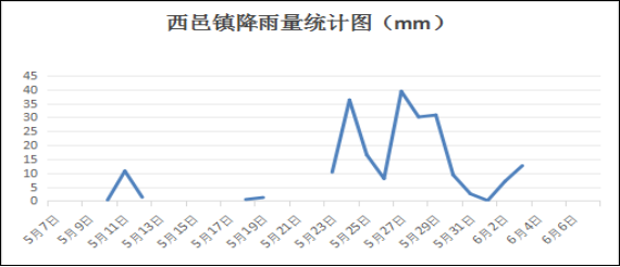 事故前项目所在区域降雨较多,根据鹤庆县气象局提供的资料,2025年5月7日至6月7日西邑镇累计降水量为218.3mm;根据统计,5月23日至6月3日该区域集中降雨量202.7mm,占比92.8%。西邑镇降雨量时段分布见下图: